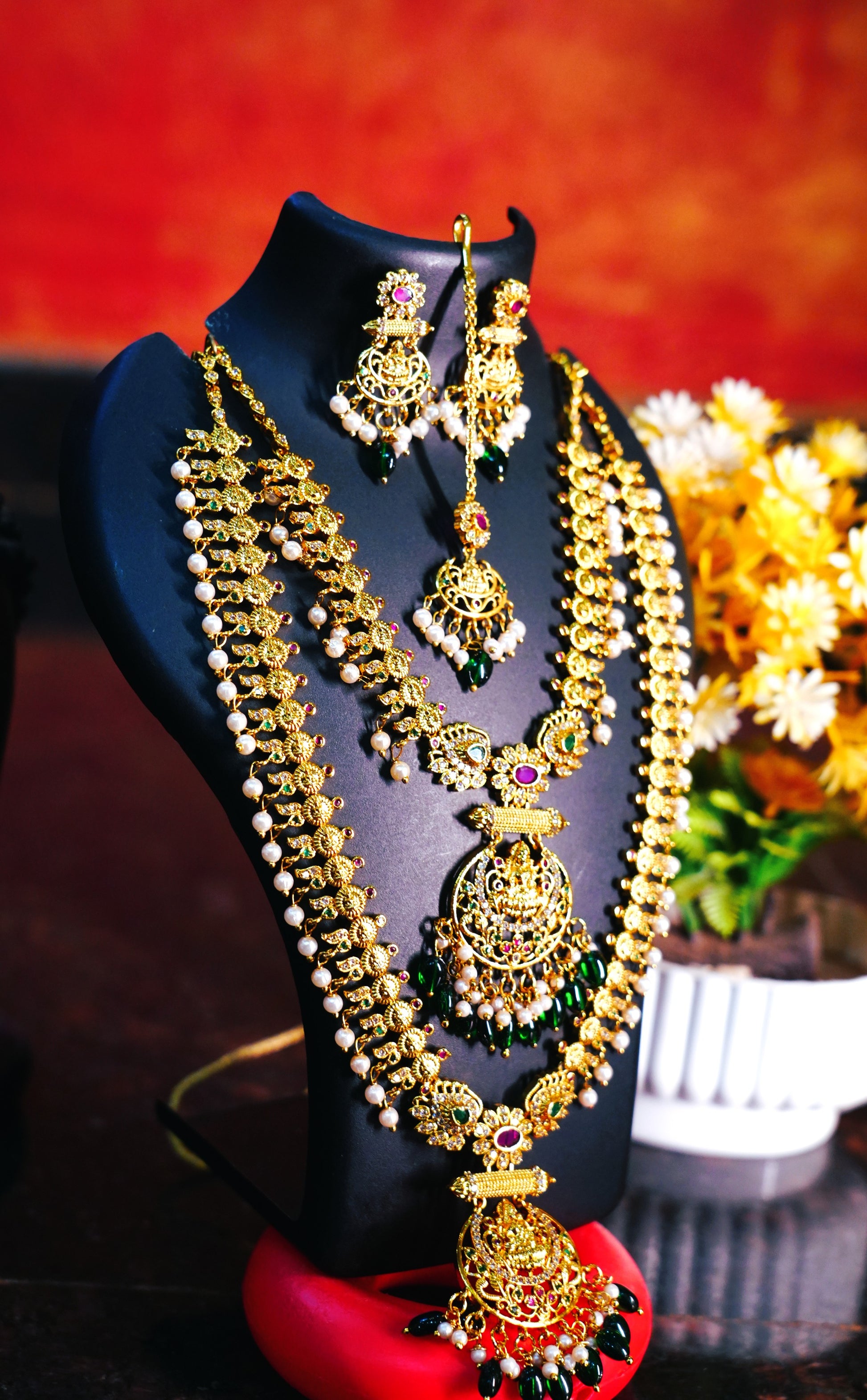 Name: Long Haaram Necklace with earrings & Perfect for weddings, festivals, and special occasions